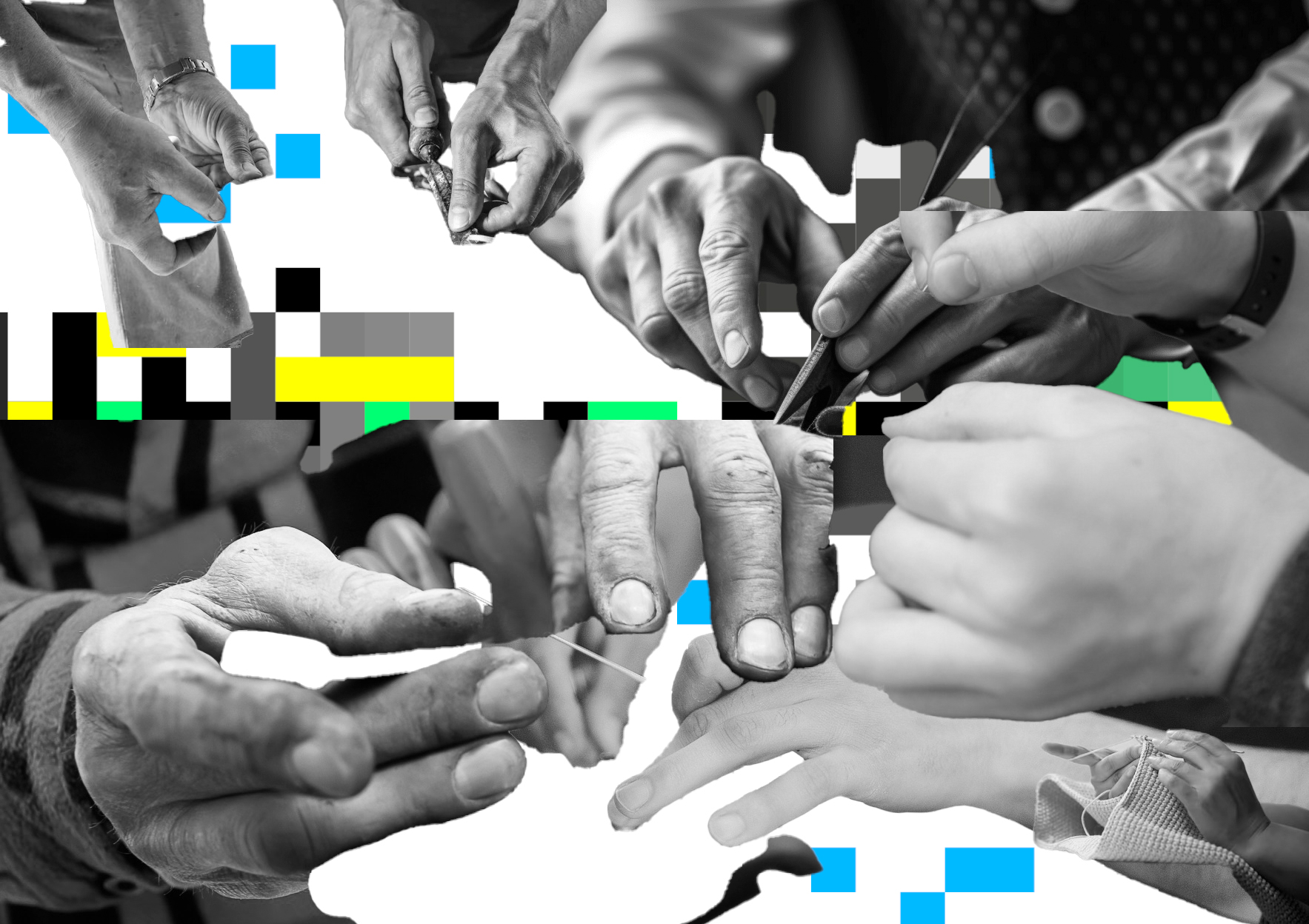 Manuelle Arbeit wird durch intuitive, berührungsfreie Technologien unterstützt. Im Mittelpunkt stehen die aktiven Hände der Nutzer:innen, die durch begleitende, sensible technische Peripherie mehr Freiheit, Präzision und Fokus im Arbeitsalltag gewinnen.